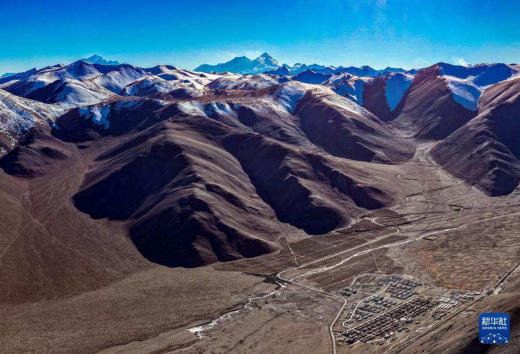 珠穆朗瑪峰腳下的西藏定日縣措果鄉(xiāng)野江村,靠近珠峰方向為建成并交付群眾使用的新房(11月12日攝,無人機(jī)照片)。新華社記者 姜帆 攝