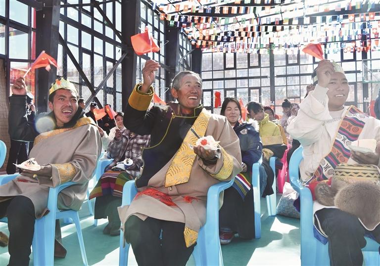 這一幕,發(fā)生在1月6日日喀則市定結(jié)縣郭加鄉(xiāng)政府禮堂里舉行的“感恩奮進(jìn)新居樂業(yè),暖冬六送情滿家園”活動(dòng)現(xiàn)場(chǎng)。