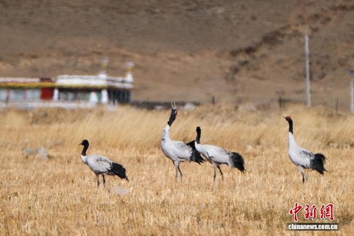 圖為2月8日,拉薩林周縣春堆鄉(xiāng)卡東村的黑頸鶴種群。江飛波 攝