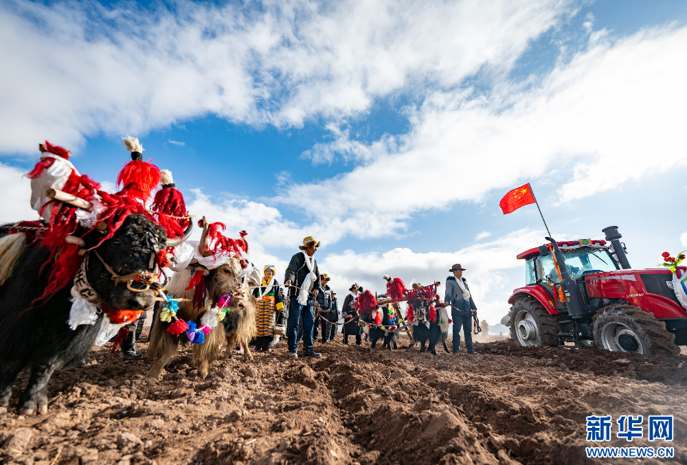 當(dāng)日,西藏自治區(qū)拉薩市林周縣春堆鄉(xiāng)春堆村群眾身著盛裝,按照傳統(tǒng)儀式,手捧青稞酒,在拉薩河谷舉行春耕儀式,播撒今春第一粒種子,祈福豐收。過(guò)去,“二牛抬杠”是當(dāng)?shù)貍鹘y(tǒng)的農(nóng)耕方式。如今,春堆村的農(nóng)機(jī)化率已達(dá)到100%。