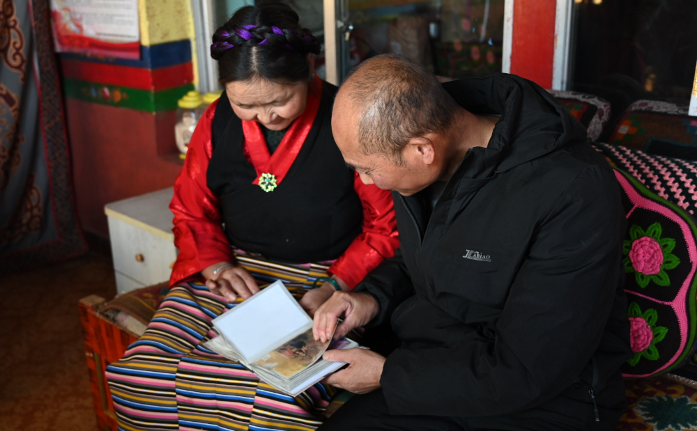 3月23日,央珍和徐文軍夫婦在翻看照片。新華網(wǎng)發(fā) 劉蒙青 攝