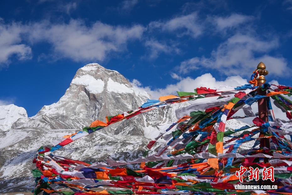 3月26日,西藏日喀則亞東縣卓木拉日雪山銀峰聳立,山腳下藏式村落錯落,經(jīng)幡隨風舒展。牧民趕著牛羊歸牧,與皚皚雪峰、高原草場相映,構(gòu)成寧靜壯美的春日圖景。卓木拉日雪山位于亞東縣帕里鎮(zhèn),又名“神女峰”。圖為卓木拉日雪山與經(jīng)幡相映成景。貢確 攝