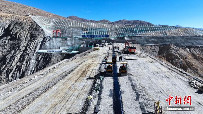圖為世界海拔最高超百米級(jí)瀝青混凝土心墻壩填筑。中國(guó)水電基礎(chǔ)局有限公司供圖