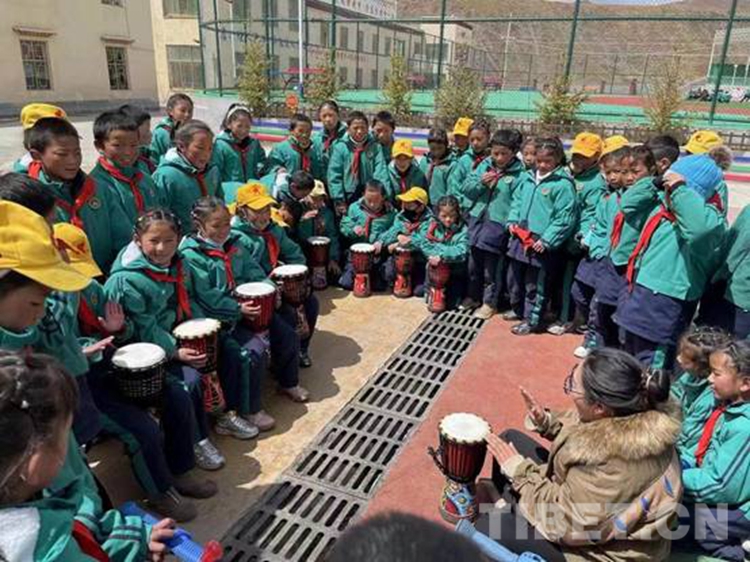 圖為西藏自治區(qū)那曲市比如縣達塘鄉(xiāng)的孩子們學(xué)打鼓 攝影:嘎瑪卓瑪