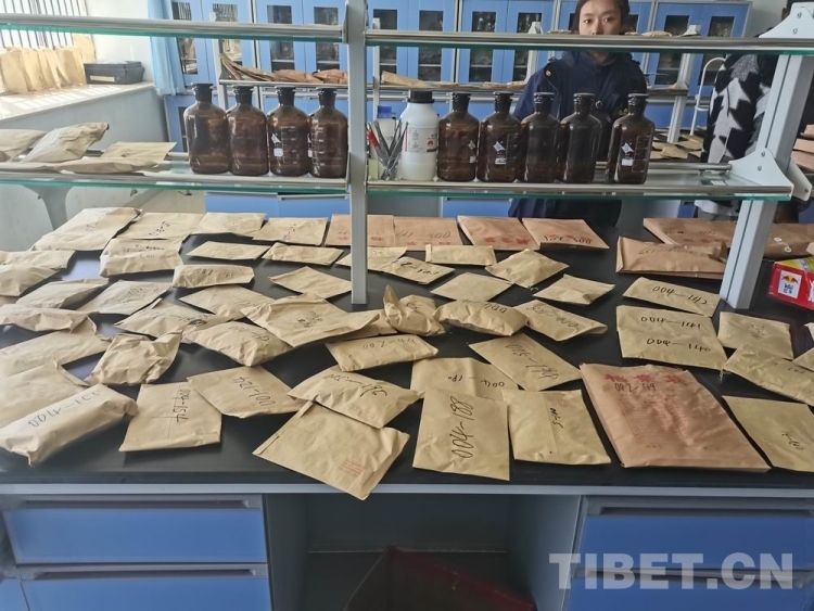 圖為西藏自治區(qū)農牧科學院草業(yè)科學研究所科技人員將采集到的牧草種質資源在實驗室內預處理