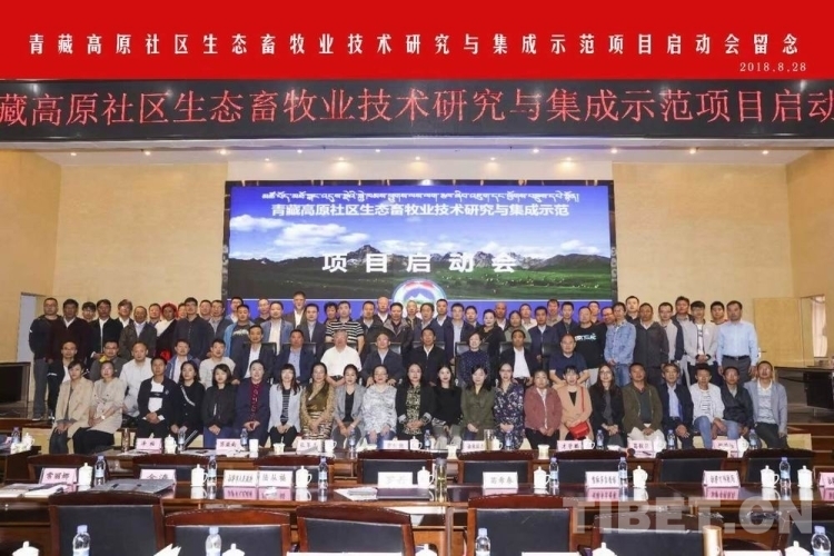 圖為2018年8月“青藏高原社區(qū)生態(tài)畜牧業(yè)技術研究與集成示范”項目啟動會的會議合影。該項目是西藏科研團隊承擔的科技部重點研發(fā)項目