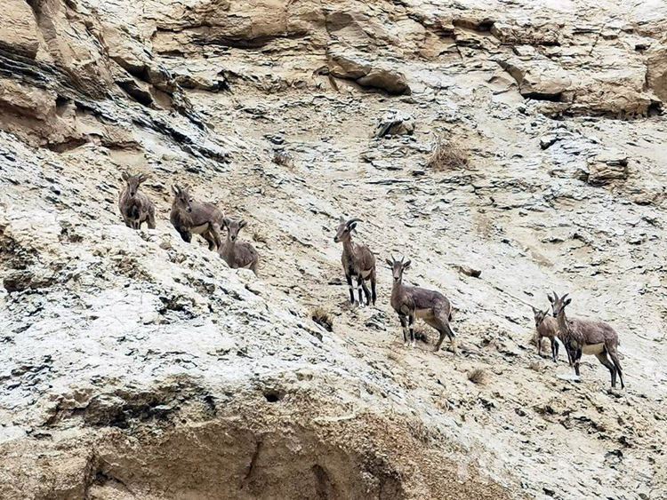 2022年7月,在阿里調(diào)研期間,我們就看到了巖羚、藏羚羊、藏原羚和野驢等野生動物。比如,汽車在扎達縣停車休息時,我們看到了一群巖羚羊在土坡上攀爬。據(jù)說巖羚羊善于攀登山地,而且機警敏捷。只見它們在扎達土林坡上排隊行走,特別悠然。