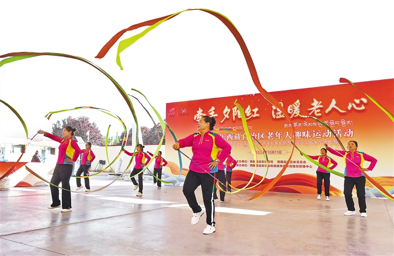 圖為2024年西藏自治區(qū)“牽手夕陽紅 溫暖老人心”老年人趣味運動活動現(xiàn)場。記者 唐斌 攝