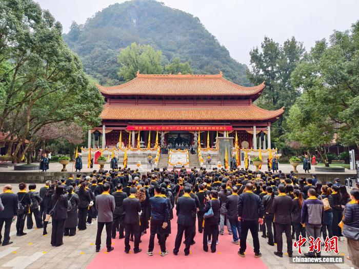 2025年10月28日,200余名海峽兩岸同胞在湖南省永州市寧遠縣九嶷山瑤族鄉(xiāng)舜帝陵,參加“祭舜帝 傳仁心 旺天下”乙巳年旺旺集團祭祀舜帝典禮,共祭中華民族的人文始祖舜帝。圖為典禮現(xiàn)場。中新社記者 胡默達 攝