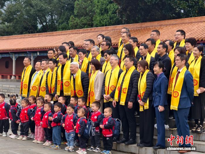 2025年10月28日,200余名海峽兩岸同胞在湖南省永州市寧遠縣九嶷山瑤族鄉(xiāng)舜帝陵,參加“祭舜帝 傳仁心 旺天下”乙巳年旺旺集團祭祀舜帝典禮,共祭中華民族的人文始祖舜帝。圖為參與祭祀的部分嘉賓合影。中新社記者 胡默達 攝