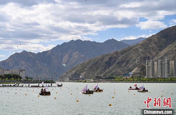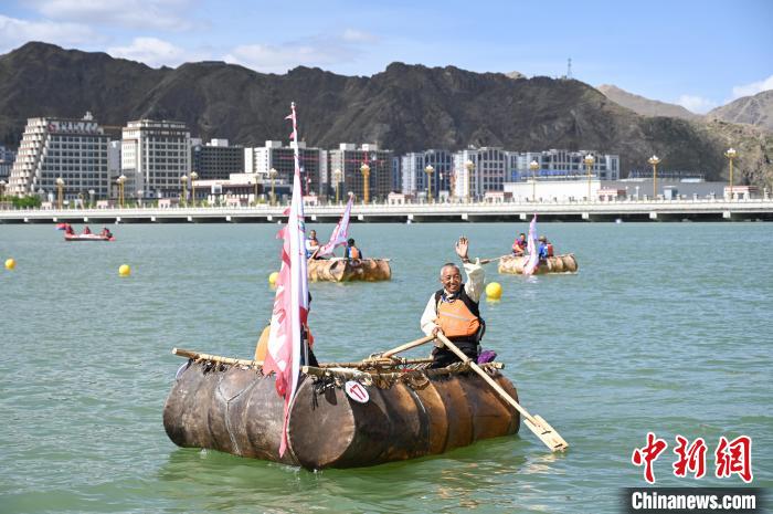 6月9日,2024年西藏自治區(qū)端午節(jié)牛皮船(龍舟)賽在拉薩市濱河公園水域舉辦。據(jù)悉,本次賽事系西藏首次舉辦、也是中國國內(nèi)海拔最高的牛皮船(龍舟)賽 。比賽邀請了來自遼寧、湖北、湖南、四川、云南、貴州和廣西壯族自治區(qū)的30名龍舟運動員,與西藏區(qū)內(nèi)的30名龍舟運動員以及40名牛皮船運動員進(jìn)行同場競技。圖為牛皮船比賽現(xiàn)場。貢嘎來松 攝