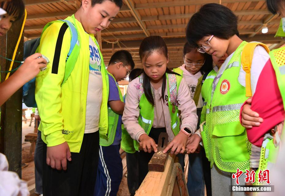 “世界龍舟看中國,中國龍舟看福州,福州龍舟看方莊?!蔽挥诟=ㄊ「V菔虚}侯縣的方莊村,是中國最大的龍舟制造村,有著七百多年制作龍舟的歷史。隨著端午節(jié)臨近,方莊村內(nèi)的龍舟制造廠里,工匠們正加班加點(diǎn)趕制端午節(jié)的龍舟訂單。據(jù)統(tǒng)計(jì),目前該村每年能接到超過200艘龍舟的訂單,總產(chǎn)值約600萬元人民幣。圖為5月25日,在方莊村的“龍舟世家”方忠雄龍舟廠里,前來參觀的小學(xué)生在體驗(yàn)傳統(tǒng)龍舟的制作工藝。中新社記者 張斌 攝