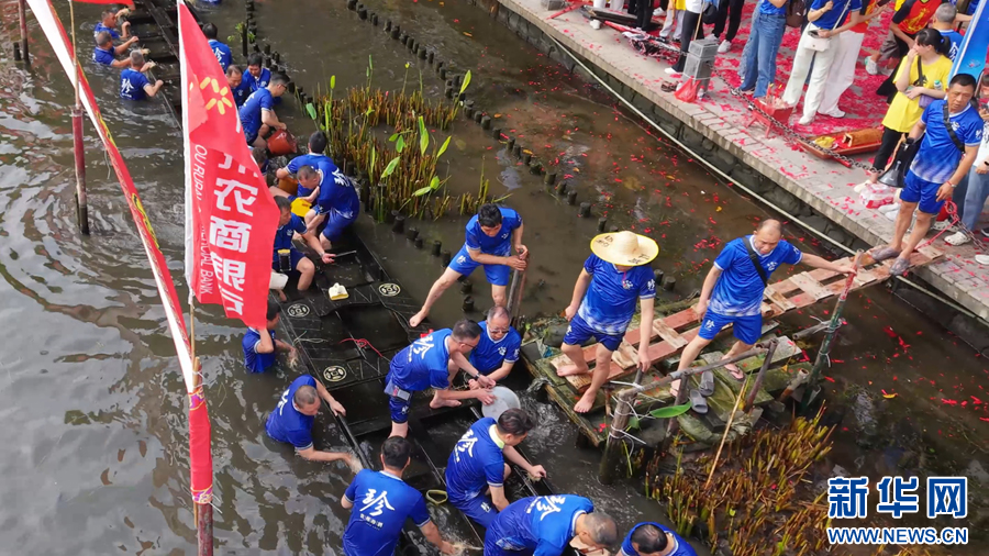 端午前夕,廣州市荔灣區(qū)泮塘村舉行傳統(tǒng)“起龍”儀式。新華網(wǎng)發(fā)(張朝竣 攝)