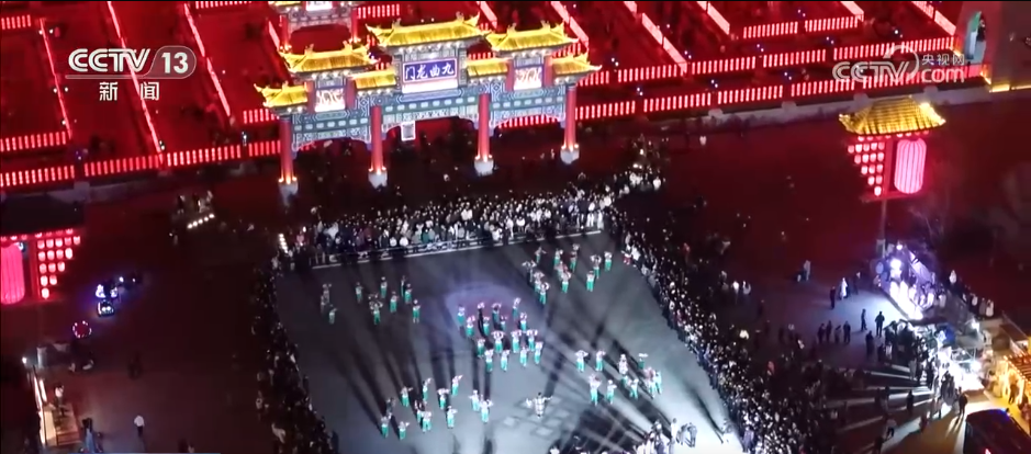 九曲燈陣占地面積近20畝,外部方正、內(nèi)部曲折,宛如“九曲十八彎”的黃河。游客們跟隨奏樂隊(duì)伍,進(jìn)入九宮九格的迷宮,穿行全長2.4公里的回廊,依次走過寓意著“福祿壽喜”的九個(gè)曲陣。兩邊的燈籠上懸掛著百家姓和十二生肖,游客們可以一邊轉(zhuǎn)九曲,一邊尋找印有自己姓氏和屬相的紅燈籠,沉浸式體驗(yàn)元宵佳節(jié)的喜慶氛圍。除了九曲燈陣,社火展演、主題光影秀、無人機(jī)煙花秀也輪番上演。據(jù)了解,該活動(dòng)將一直持續(xù)到正月十五。