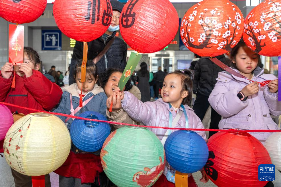 2月11日,小朋友在南京南站舉辦的迎接元宵節(jié)活動(dòng)上猜燈謎。