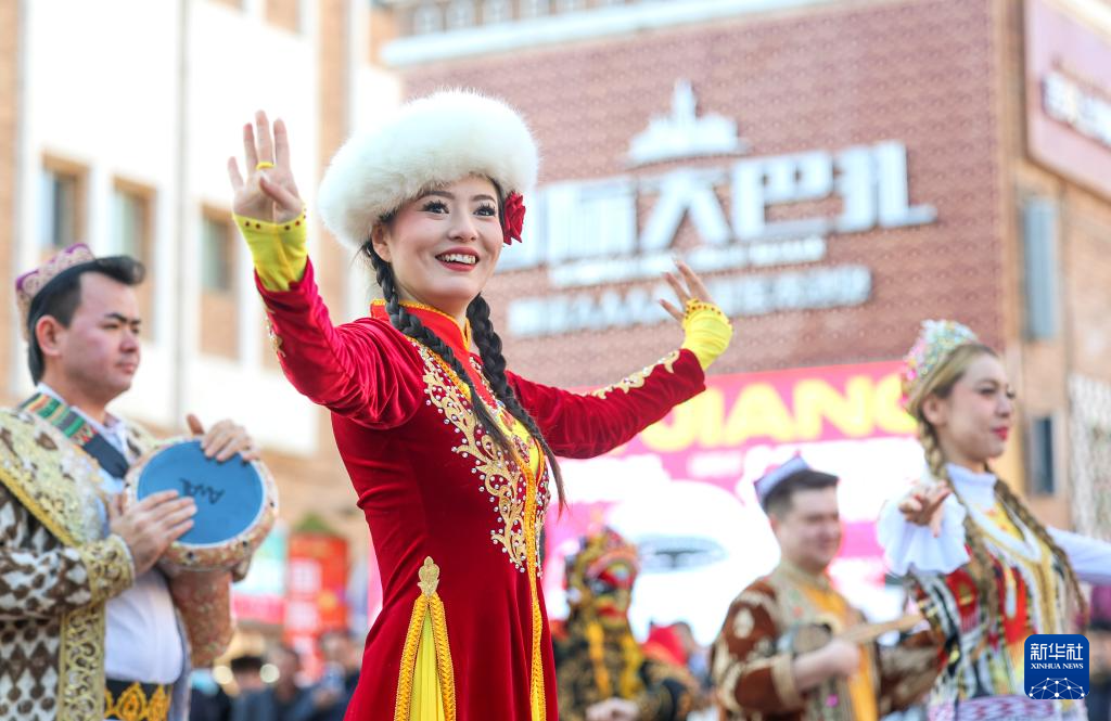 2月11日,演員在烏魯木齊大巴扎步行街舉辦的社火巡游活動(dòng)中表演。