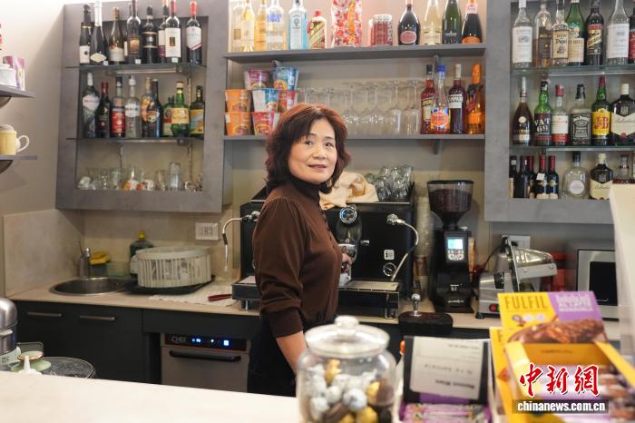 當(dāng)?shù)貢r(shí)間2月13日,意大利米蘭,華人老板陳曉丹在帕爾馬酒店前臺(tái)。中新社記者 單璐 攝