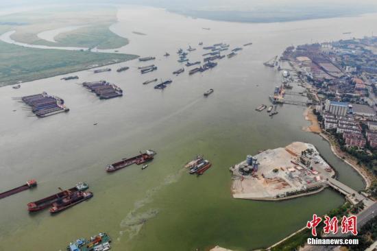 8月9日,航拍南京魚(yú)嘴濕地公園,旁邊就是南京第三長(zhǎng)江大橋。 中新社記者 泱波 攝