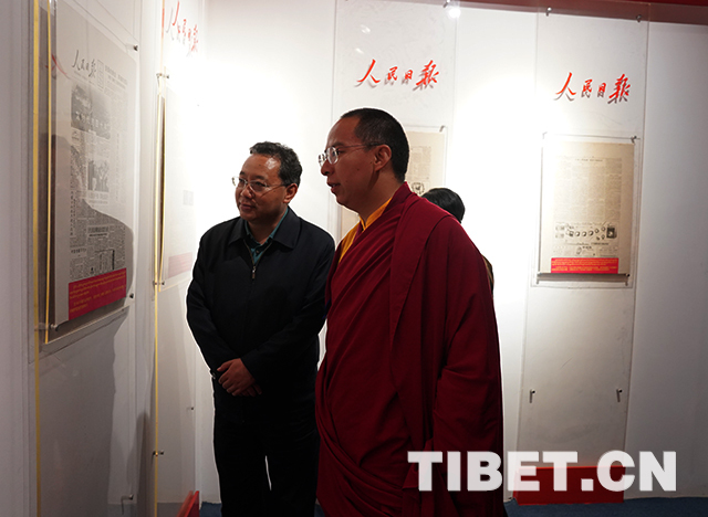 圖為十一世班禪參觀克松社區(qū)居委會陳列館。攝影:王淑