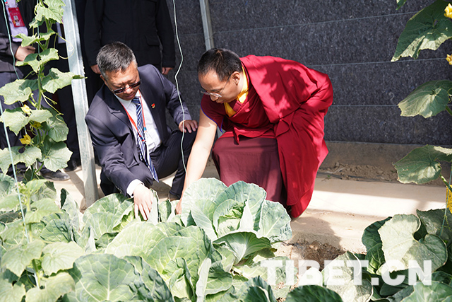 圖為十一世班禪在白朗縣考察蔬菜種植基地。攝影:王淑