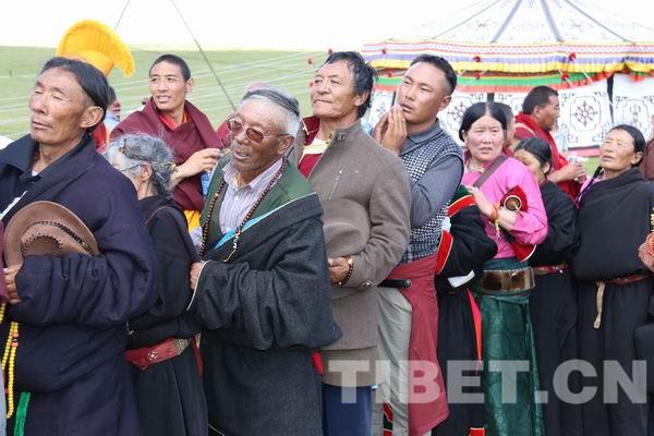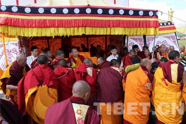 7月19日,班禪在玉樹州雜多縣貢薩寺舉行完法事后,中午就來到寺前的扎西灘,為信教群眾摸頂賜福。原計劃,信教群眾前來接受班禪大師的講經灌頂和摸頂應于下午6點結束。但實際上在進行完長壽經祈愿灌頂后,已下午3點半,為了能讓所有的信教群眾都受到祝福,在班禪的堅持下,為將近2萬信教群眾一個一個摸頂?shù)搅送砩?點多,加上灌頂法會,整個活動持續(xù)了整整8個多小時。班禪在灌頂法會和摸頂儀式中,不斷說的一句話就是:“我已經祈愿祝福了你們!我已經祈愿祝福了你!愿幸福和安康生生世世伴隨。”