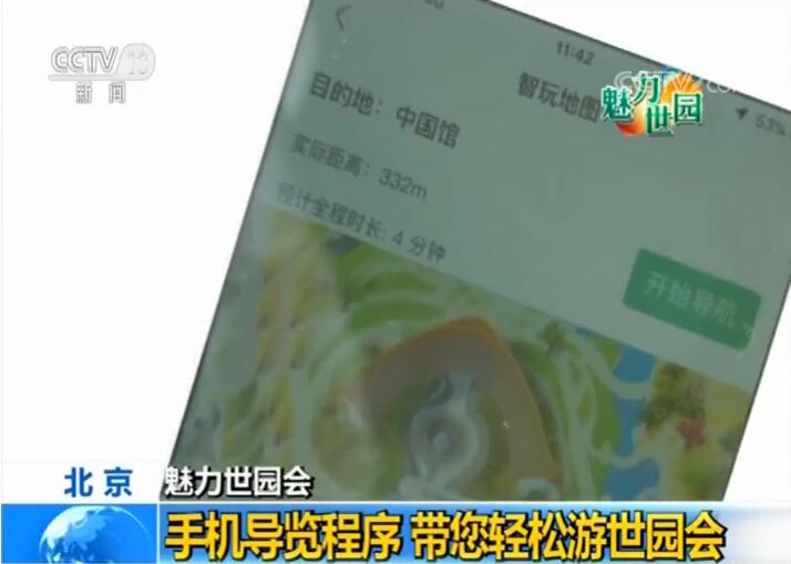 央視記者 張偉澤:這個智玩地圖,我們現(xiàn)在比如說去中國館,這里有個導(dǎo)航 現(xiàn)在顯示中國館離我有332米,4分鐘就能到達(dá),我們現(xiàn)在開始導(dǎo)航,跟著導(dǎo)航去尋找中國館。