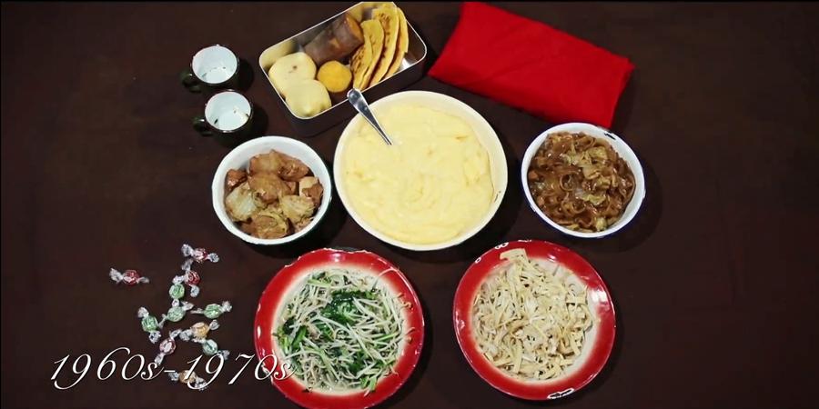 視頻名為《年夜飯的變遷》,生動展現(xiàn)了改革開放40年來中國人年夜飯的變遷,從滿足溫飽到豐盛美味,再到追求營養(yǎng)健康,折射出百姓生活水平的顯著提高。