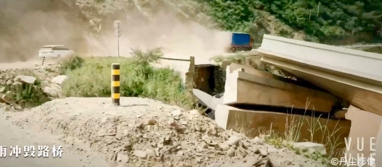圖為雨季川藏公路上被沖垮的路橋。
