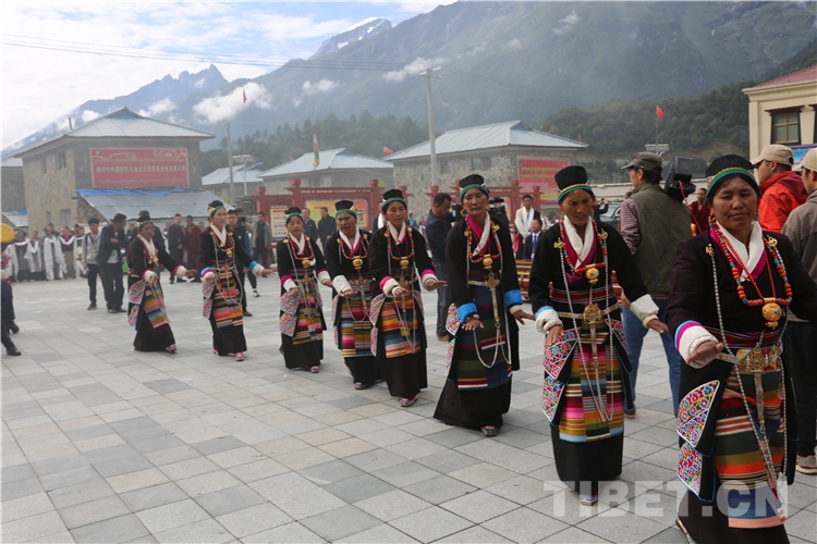 8月23日,瑪嘎村像過節(jié)一樣熱鬧,在村大壩子上群眾歡快地跳起了歷史悠久的 “同甲啦”舞,歡迎十一世班禪的到來。“同甲啦”舞是流傳了1300多年的古老民間歌舞,深受當(dāng)?shù)匕傩盏南矏?。歌詞表現(xiàn)了當(dāng)?shù)厝藗儫釔凵?、熱愛大自然、歌頌和平、歌頌友誼,唱出了家庭和睦、尊老愛幼、保護(hù)環(huán)境的樸素心愿。