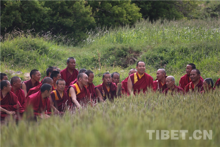 圖為十一世班禪在米拉日巴故居旁的農田“沃瑪?shù)A松” 攝影:王淑