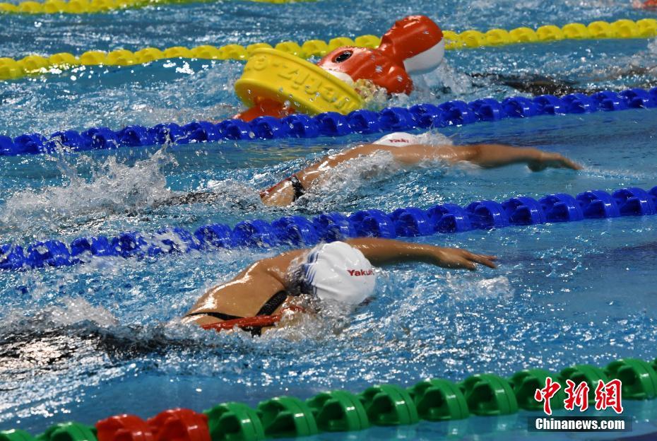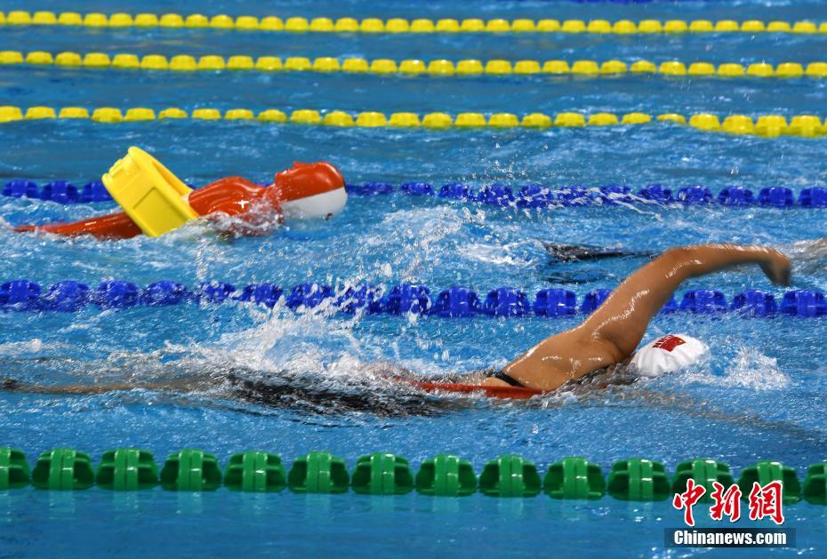 10月22日晚,在湖北省武漢市進行的第七屆世界軍人運動會男子4x50米混合救生接力決賽中,中國隊以1分27秒37的成績獲得冠軍。圖為比賽現(xiàn)場。中新社記者 周毅 攝
