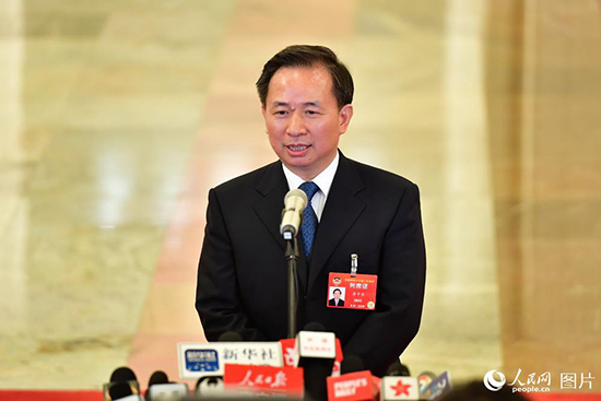 生態(tài)環(huán)境部部長(zhǎng)李干杰接受記者采訪。人民網(wǎng)記者 于凱 攝