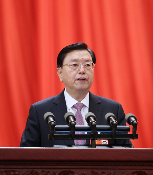 3月11日,十二屆全國人大常委會委員長張德江向十三屆全國人大一次會議作《全國人民代表大會常務(wù)委員會工作報(bào)告》。 新華社記者 姚大偉 攝