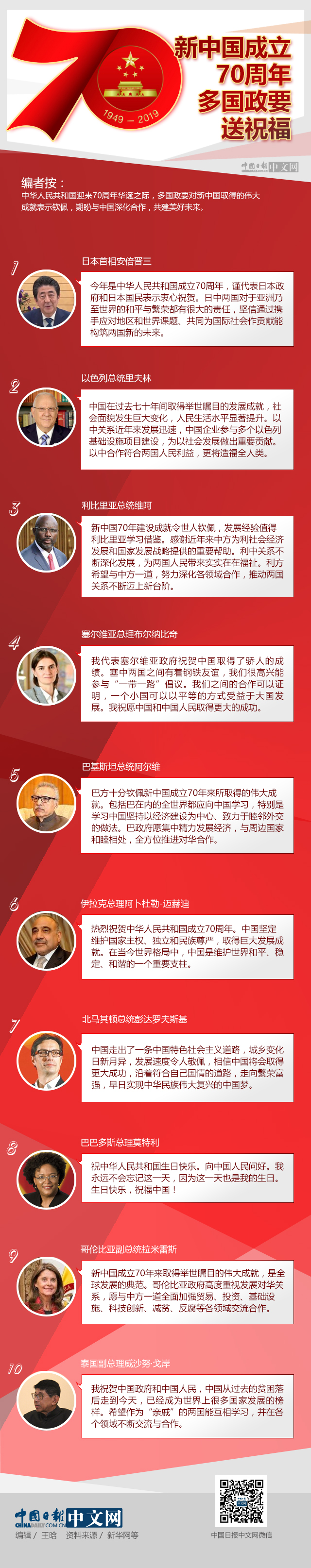 圖解 | 新中國(guó)成立70周年 多國(guó)政要送祝福