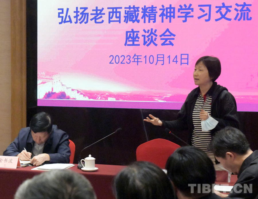 圖為北京建藏援藏工作者協(xié)會副會長張小康在協(xié)會召開的“弘揚老西藏精神學習交流座談會”上介紹“老西藏精神”(唐召明2023年10月14日攝)