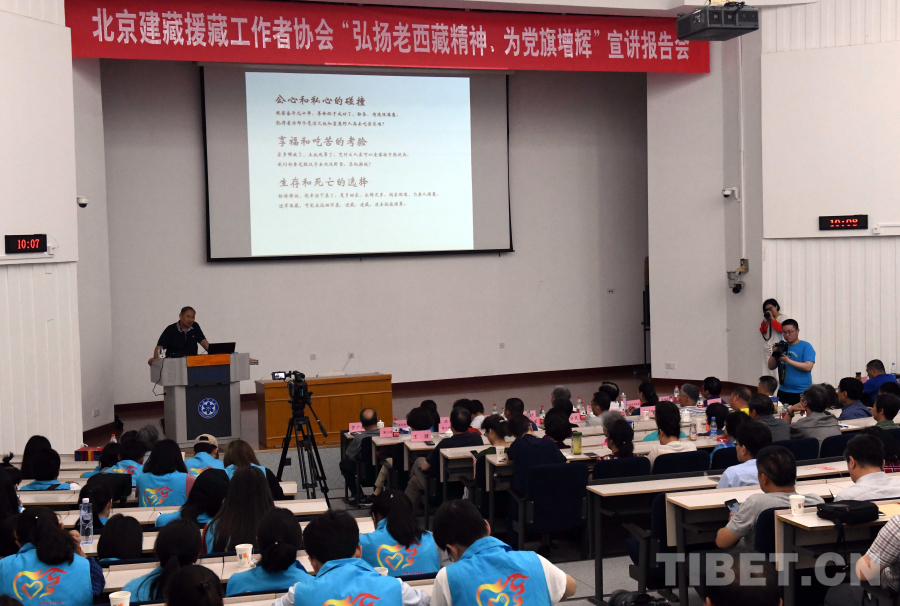 圖為蘆繼兵在協(xié)會所舉辦的“弘揚老西藏精神,為黨旗增輝”宣講報告會上作宣講(唐召明2018年5月19日攝)