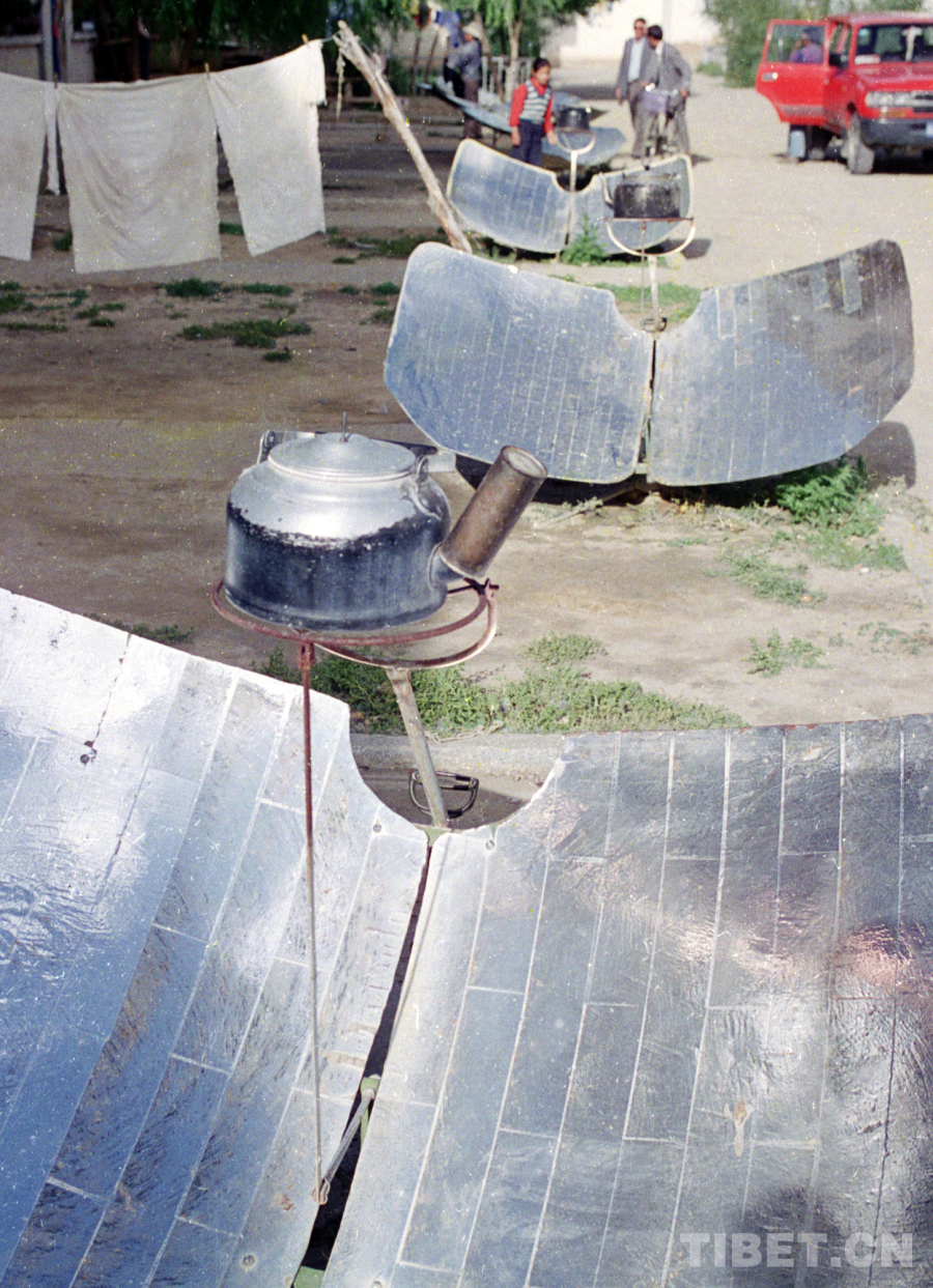 這讓我不禁想起1987年,我沿著青藏公路一路采訪進(jìn)藏,在藏北高原房前屋后,見到大量正在使用特殊燒水裝置太陽灶的情景。