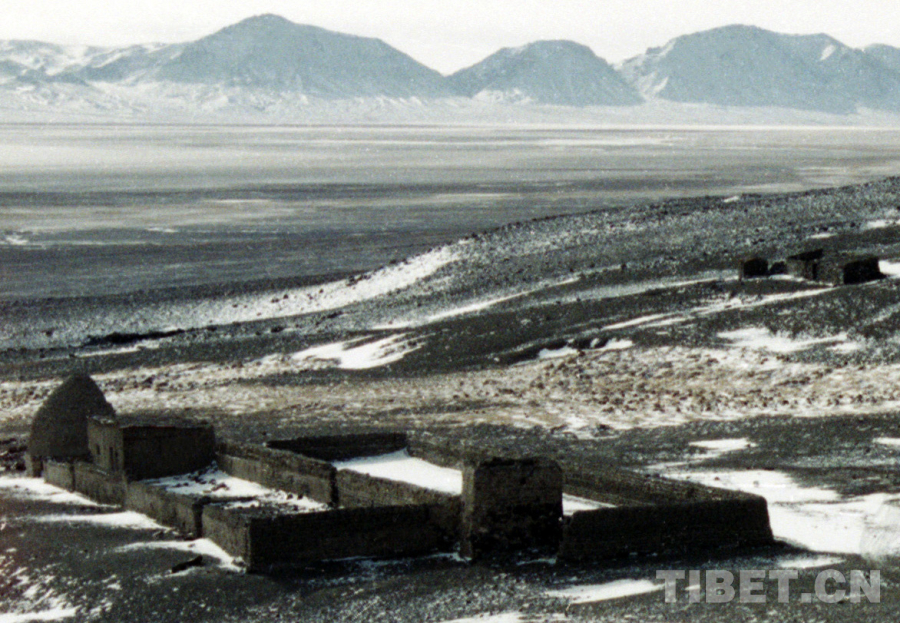 圖為雙湖辦事處前身的申扎縣加林工作組遺址,位于加林山下的俄東溝(唐召明2001年攝)