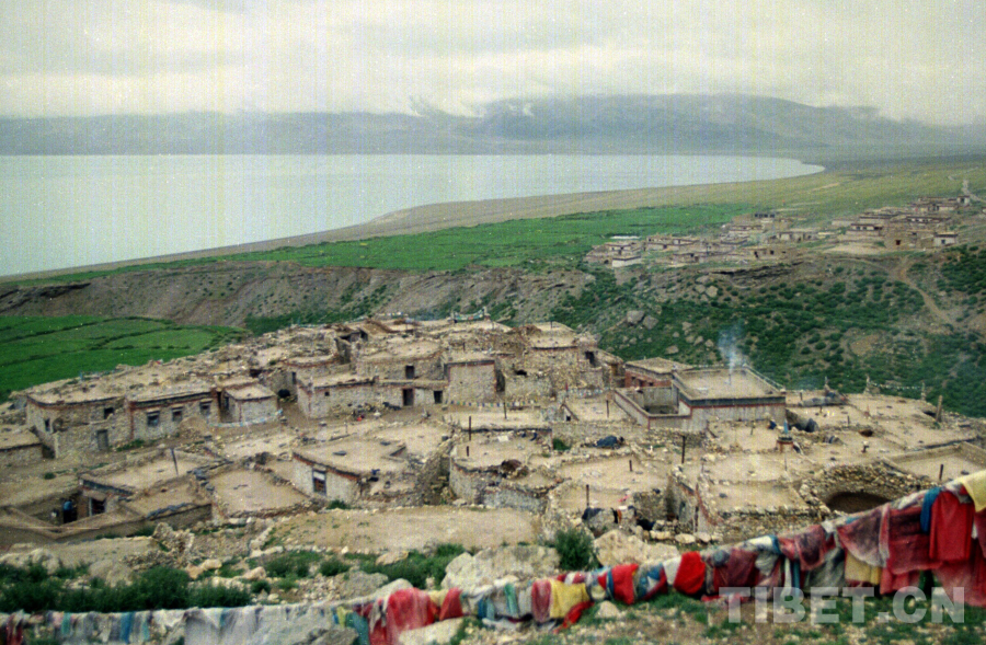 圖為當(dāng)惹雍錯(cuò)湖畔的尼瑪縣文部鄉(xiāng)南村(唐召明1987年攝)
