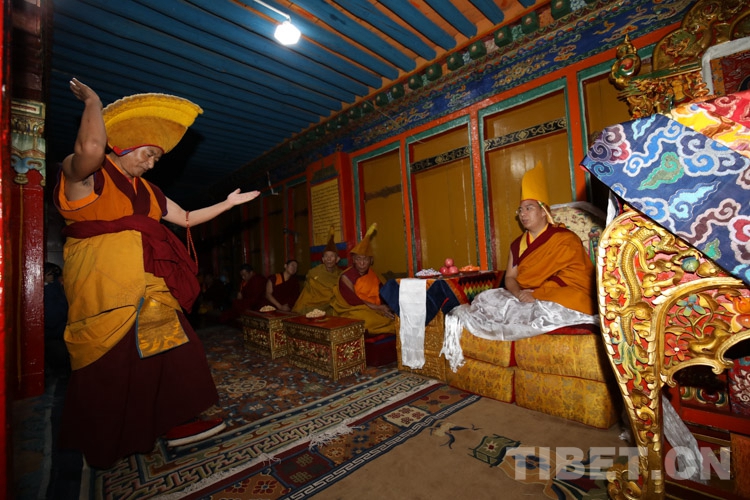 圖為十一世班禪在高級辯經中 攝影:扎西