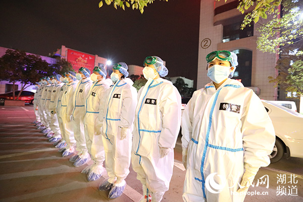 女子抗疫先鋒隊換好衣服,集結完畢準備進入隔離區(qū)(襄陽特警供圖)