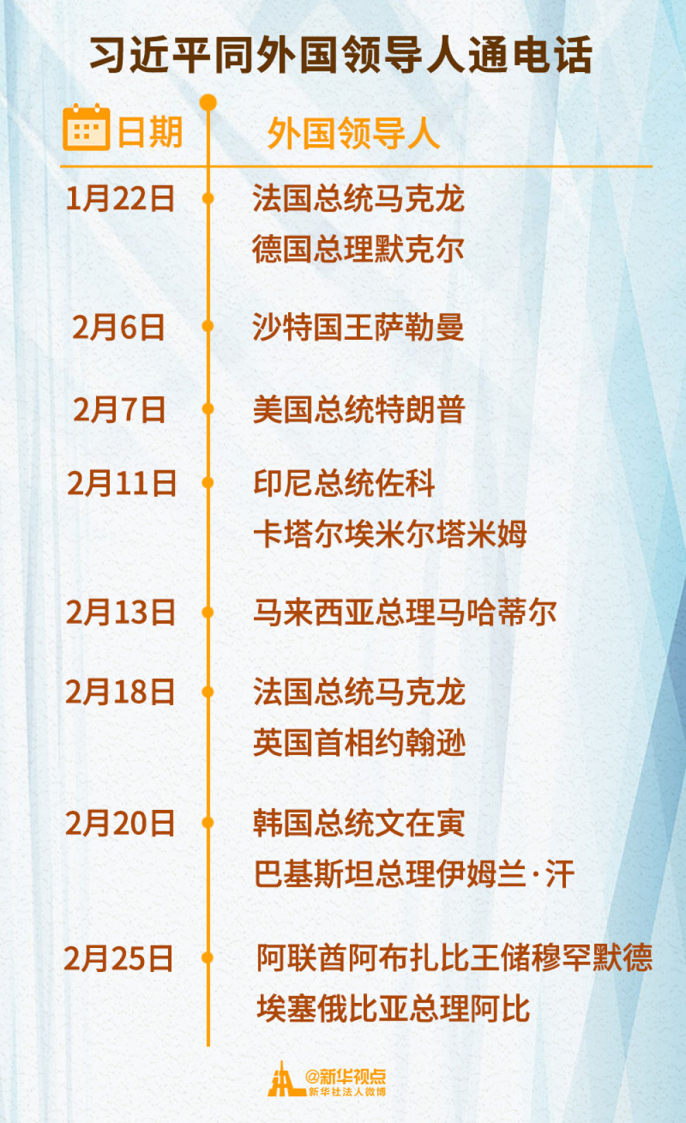 2月以來,習近平主席已先后同11位外國領導人通電話,涉及國家遍及亞洲、歐洲、非洲、美洲等地區(qū)。