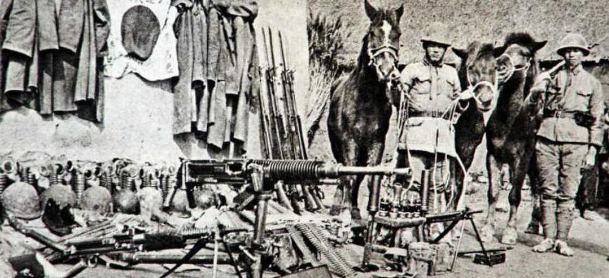 新四軍戰(zhàn)士們在繳獲品前留影