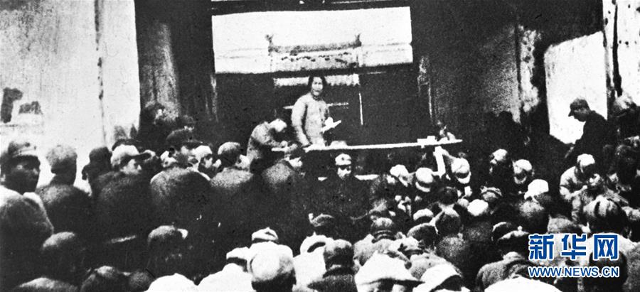1935年12月27日,毛澤東在陜北瓦窯堡黨的活動(dòng)分子會(huì)議上作《論反對(duì)日本帝國主義的策略》報(bào)告(資料照片)