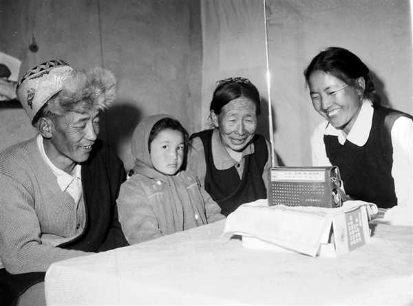 1978年 拉薩城關(guān)區(qū)東方紅居委會強巴群宗一家在收聽有關(guān)十一屆三中全會的廣播消息。