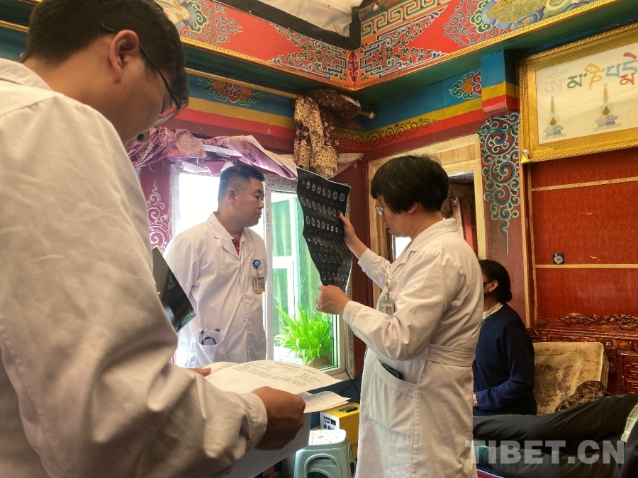 圖為醫(yī)生們在了解患者情況 攝影:格桑