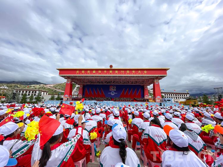 布達(dá)拉宮廣場(chǎng)上,身著西藏特色民族服裝的拉薩各族各界群眾代表,手持花束、哈達(dá)隆重集會(huì),熱烈慶祝西藏和平解放70周年。[詳細(xì)] -