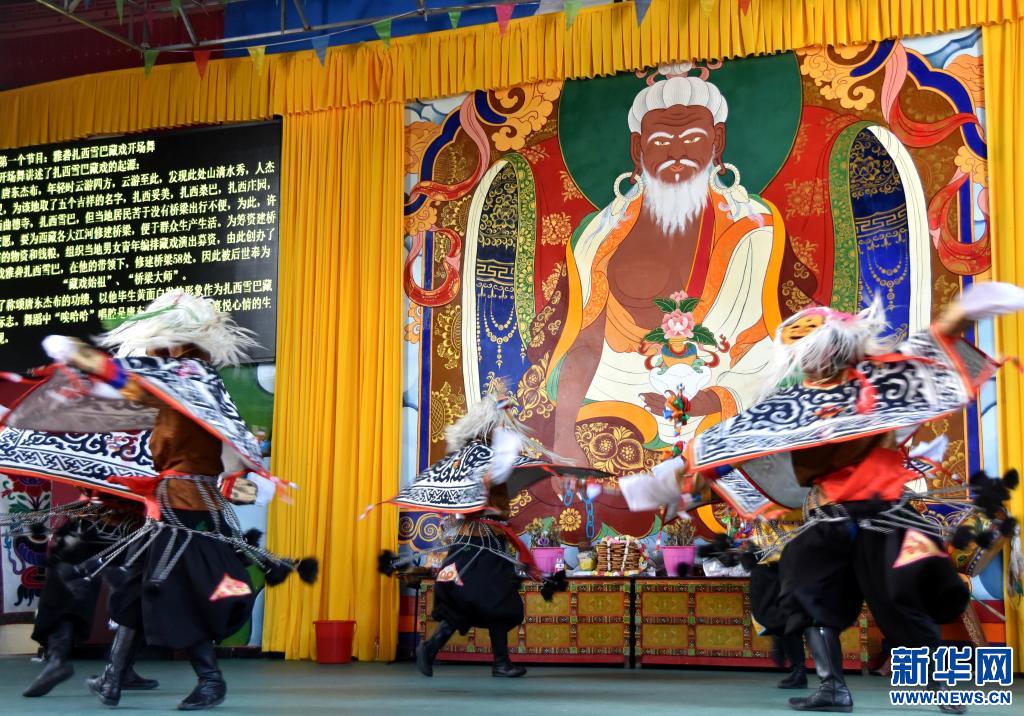 扎西曲登社區(qū)在進(jìn)行雅礱扎西雪巴藏戲表演。 中新網(wǎng)左宇坤 攝