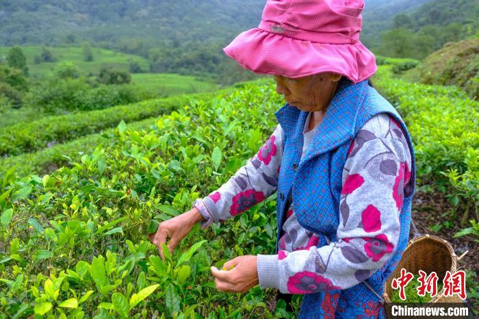 圖為正在采茶的茶農(5月18日攝)。新華網(wǎng) 雪珍 攝