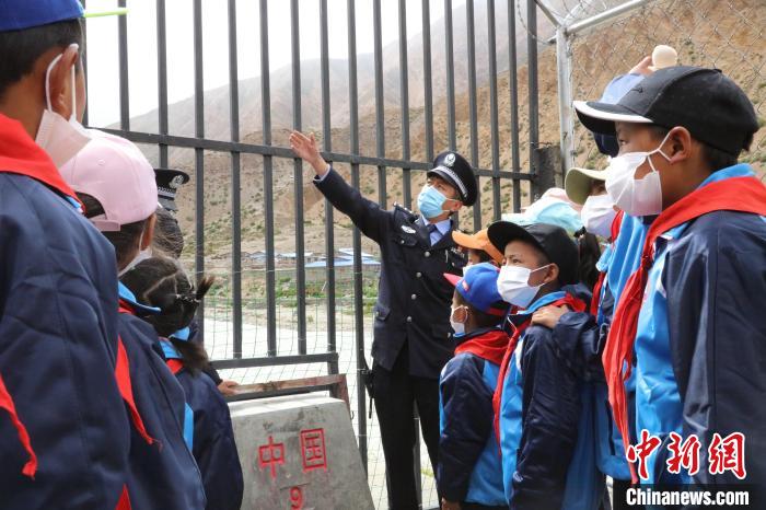 “同學(xué)們,現(xiàn)在你們看到的就是屹立在中尼邊境的9、10號(hào)界樁,界樁代表著國(guó)家的形象,我們要像愛護(hù)自己的眼睛一樣愛護(hù)、守護(hù)它?!逼仗m出入境邊防檢查站民警格桑倫珠正在為學(xué)生們講述中尼邊境界碑的故事。